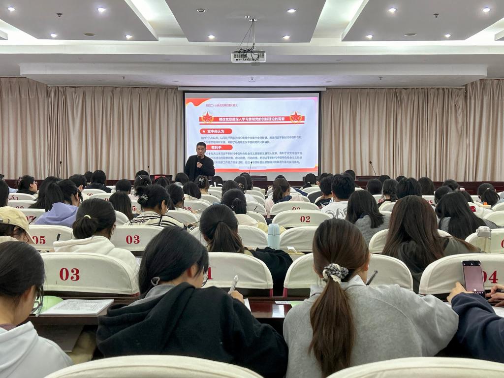 陈灵强以“解读新党章一学习贯彻党的二十大精神”为题,阐述新党章的内容和重大意义。他结合近期中国公开试射洲际导弹成功、美国大选、78年恢复高考等事件,对党章内容进行生动阐述,引人深思。党课强调,要树立党章意识,认真学习党章,严格遵守党章,自觉用党章规范自己的一言一行,从而进一步增强党的创造力、凝聚力、战斗力。学员们边听边做笔记,认真学习,本次党课取得良好效果。