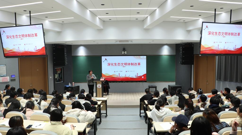 李钧敏带领学员们回顾了党的二十届三中全会审议通过的《中共中央关于进一步全面深化改革、推进中国式现代化的决定》,从“新时代生态文明体制改革取得显著成效”“深刻认识新时代新征程深化生态文明体制改革的重大意义”和“全面落实深化生态文明体制改革目标任务举措”三个方面具体展开。她指出,深化生态文明体制改革是全面推进人与自然和谐共生现代化的根本动力,鼓励学员们以习近平新时代中国特色社会主义思想为指导,践行“绿水青山就是金山银山”理念,过绿色低碳生活。她深刻分析了深化生态文明体制改革的总体思路,提出了要完善生态文明基础体制等举措。学员们边听边做笔记,本节党课取得良好效果。