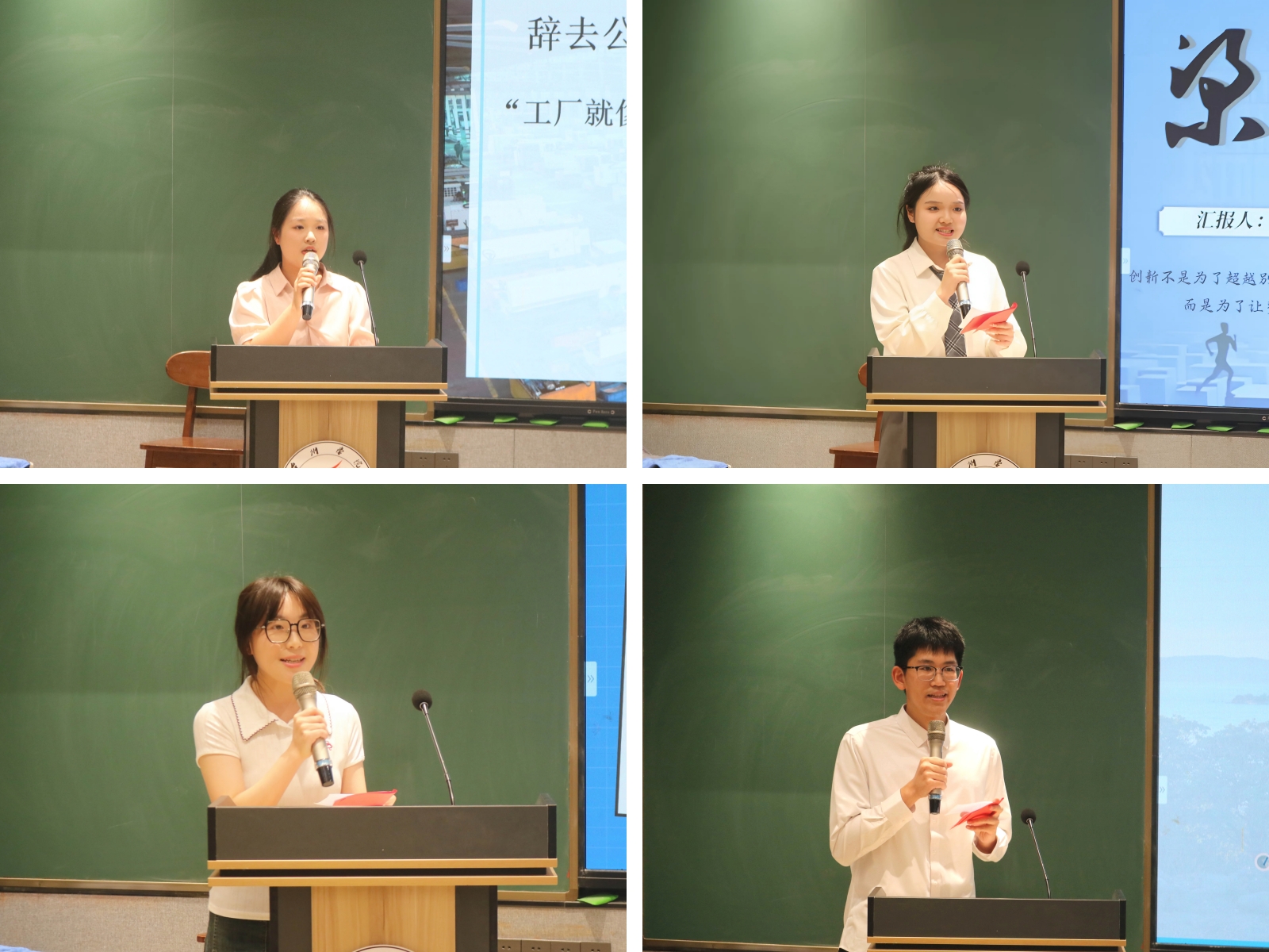 吴若宁、高珊与戴文韬以企业家的奋斗历程为切入点,巧妙串联起中国改革开放的宏大历史背景,生动展现企业家勇于创新的精神及回馈社会的深厚情怀;林思齐紧跟时代潮流,聚焦当下备受瞩目的DeepSeek模型,细腻讲述了创始人梁文峰携手一众“95后”青年才俊,让中国AI模型成功走向世界舞台的精彩故事;刘雨婷与王乐怡从家乡视角出发,分享身边农村青年创业者毅然返乡、带动家乡发展的鲜活实例,令人倍感亲切与鼓舞;林施伊以四个关键词为线索,真情讲述自己在社会实践启发下坚定扎根家乡的创业心路;最后登场的李思影从同学们熟悉的日常生活场景入手,用饱含深情的语言,勾勒出一位小摊摊主在创业路上的执着与热爱。