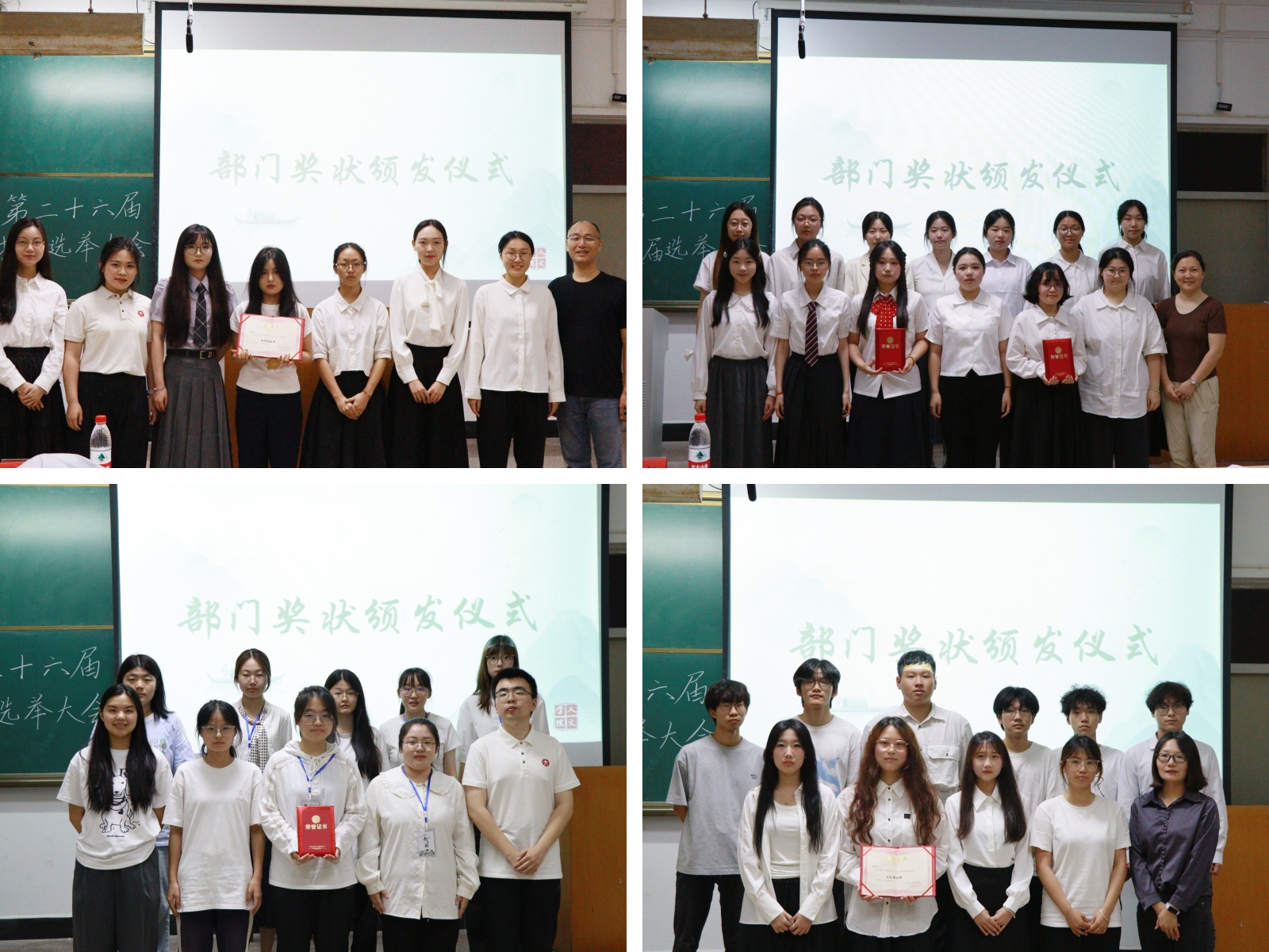 在部门奖状颁发环节中,在场老师为各部门颁发奖状,表彰团学会和党务办成员一年来的辛勤工作。