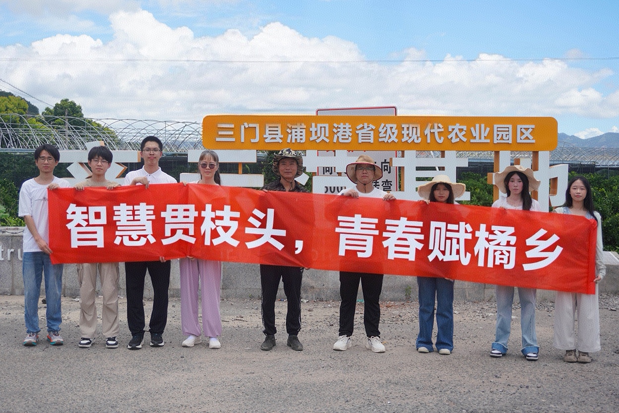 先进技术领发展,优质柑橘创橘乡。实践队成员们探访三门县苗盛柑橘专业合作社的智慧种植基地,在合作社负责人张加净的介绍下,同学们了解其通过冬季双层薄膜控温、夏季防晒网与薄膜交替使用、滴灌输药结合、生物诱虫及特制磷肥等先进调控系统,让引进的温州蜜柑凭借其早熟和超长挂果期的优势,实现错峰销售,为当地农户带来十余万元收入,实现共享共富。这种“品种改良 + 错峰营销 + 品牌营销”的三重创新,构建起“科技赋能生产、市场反哺种植”的乡村产业振兴闭环,为沿海地区农业现代化和乡村共同富裕提供了可复制的“三门方案”。