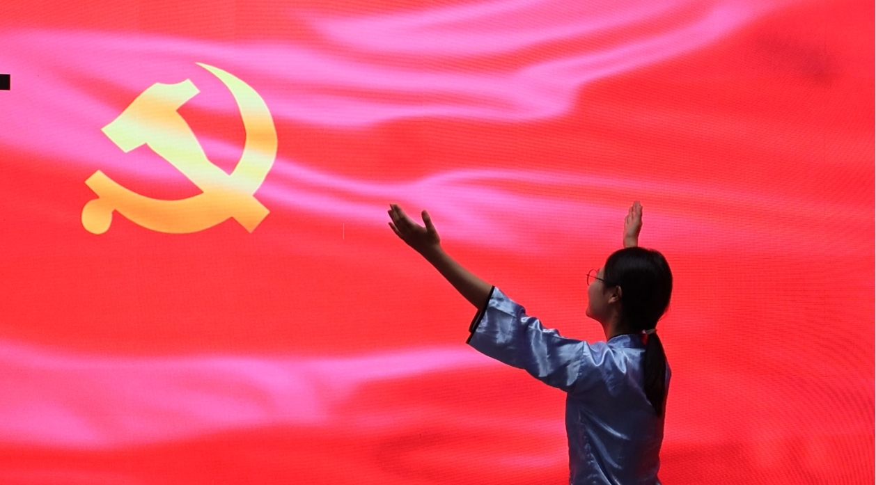 微党课末尾,郭凤韶19岁的生命轨迹在赤红党旗前与革命热忱相互映照。旋律响起,仿佛勾勒出她在旧时代风雨中冲破封建枷锁、传递革命星火的坚定身影。