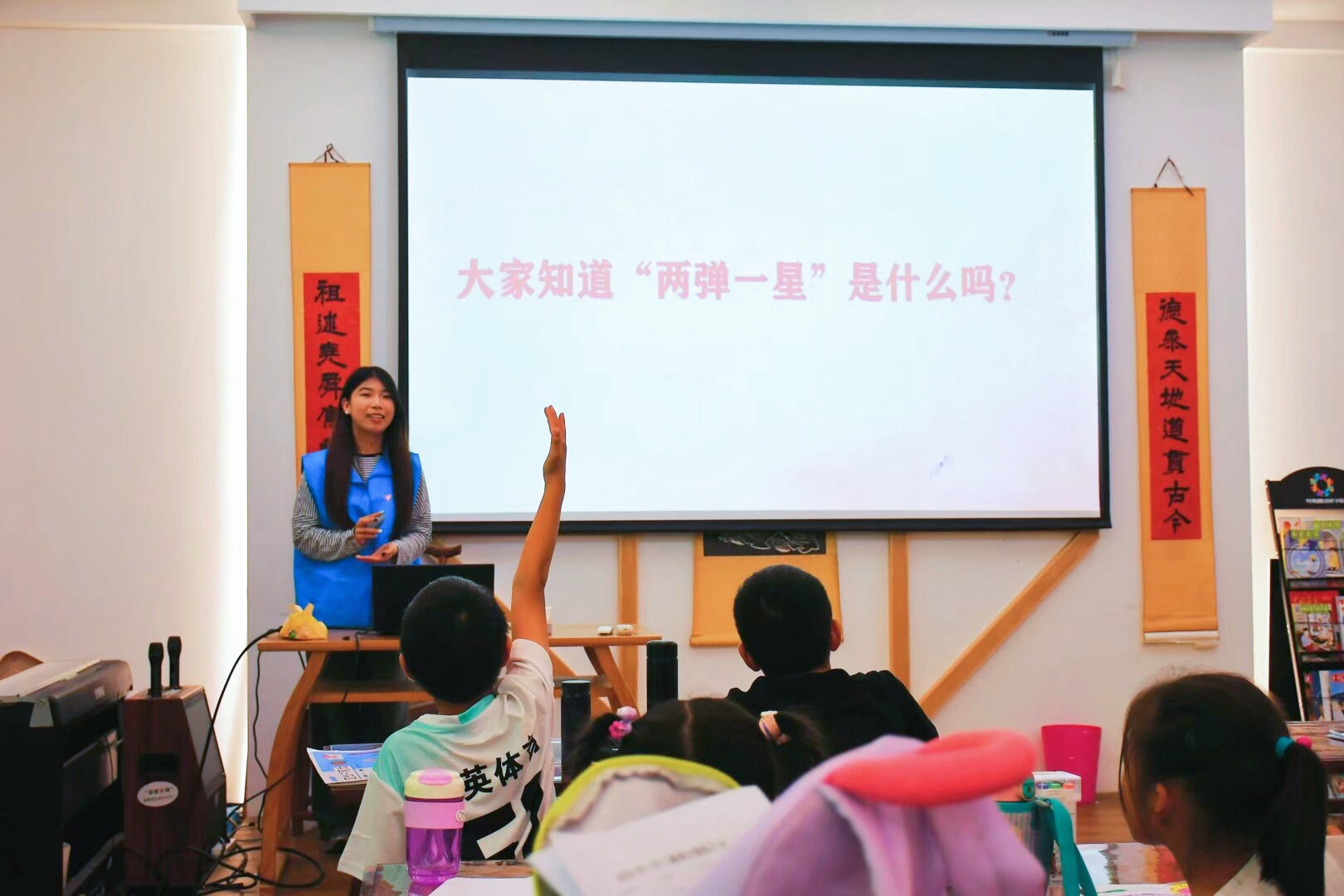 为深入弘扬“两弹一星”精神,赓续红色血脉,7月5日下午,VSport体育“星青年”志愿宣讲团实践队走进大洋社区党群服务中心,为社区小朋友们带来了一堂生动有趣的“两弹一星”精神科普课。