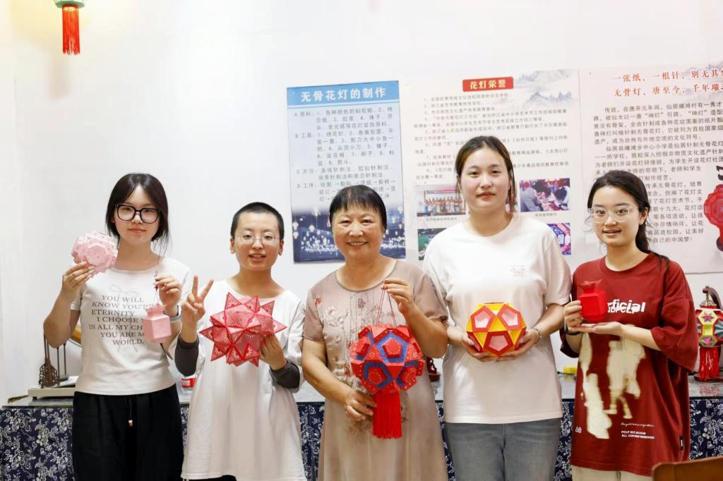 “仙居神工录”实践队以守护仙居文化、推动非遗创新为使命,致力于记录非遗中蕴含的精湛的工艺,更要传递匠人精神。在指导老师单仁慰的带领下,队员们走进方荷玉工作室,亲身感受针刺无骨花灯的鬼斧神工,听传承人坚守的故事,迈出构建仙居非遗立体传承档案的第一步。