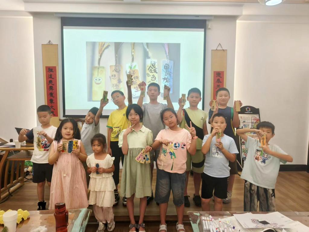 楠竹书签制作环节同样精彩。小朋友们用光洁的竹片、五彩的画笔和精巧的流苏,制作出充满自然气息的书签。他们拿起画笔,精心画上七彩图案,细心地缀上小巧的流苏,再将花草的模样印入书签之中。淡淡的楠竹清香与花草图案相结合,楠竹的清雅与自然之美一同被收藏在书页间,让传统文化与环保创意实现美妙融合。