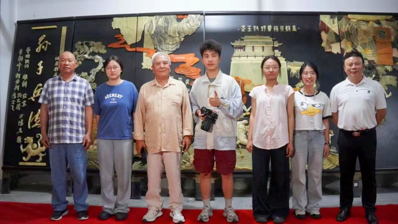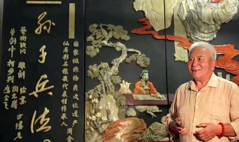 采访期间,恰逢仙居县政协人口资源环境委员会主任徐杭生到访。徐杭生向实践队补充介绍了周金水作品所获的国内外重要荣誉,包括“93新加坡国际新产品新技术专利产品博览会”设计金奖、“第五届中国出口商品博览会”金奖及“第三届乡镇企业出口产品展示会”万向金杯奖。他特别提到,艺术大师刘海粟曾长期担任周金水的艺术顾问,为《孙子兵法》及《清明上河图》等作品倾注心血,并赞誉《孙子兵法》这一作品为“千古奇作”。徐杭生还透露,2017年该作品曾获美国总统特朗普方面意向,拟由西点军校收藏,但被周金水婉拒。