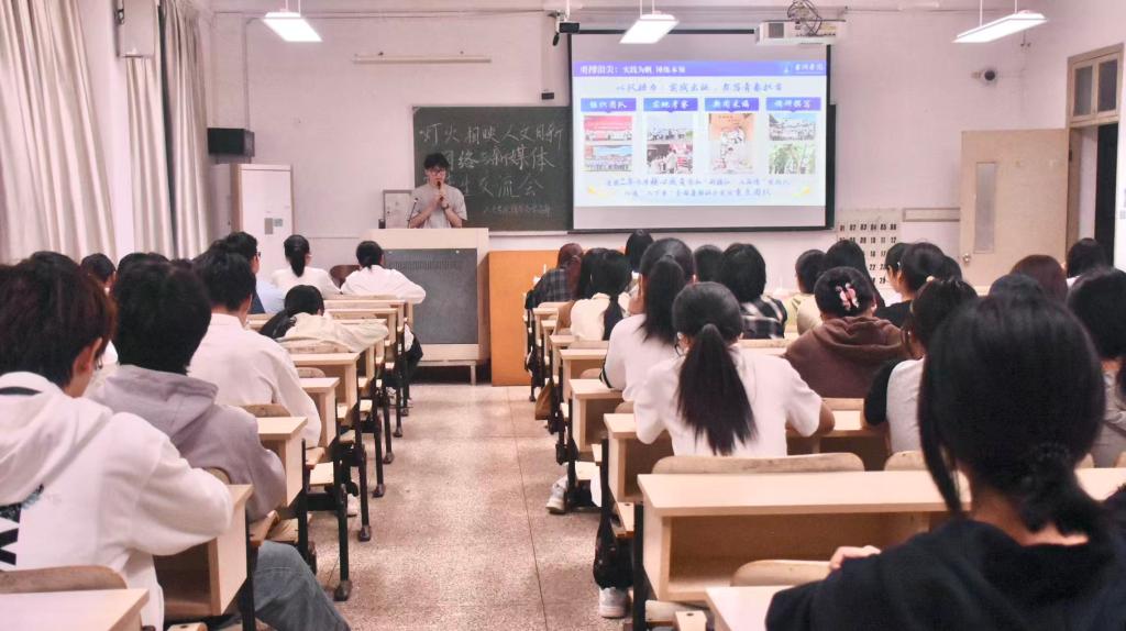 交流会围绕“学习规划”与“实践参与”两大主题展开。郑张博结合自身经历,建议新生通过查阅公司官网中的人才培养方案,明确专业学习内容与未来职业方向。他指出,“挑战杯”“中国国际老员工创新大赛”等高水平学科竞赛是锻炼综合能力的优质平台,同时强调拍摄、采编等专业技能在实际应用中的重要性,鼓励大家善用可视化语言讲好故事,持续锤炼专业核心能力。虞渺渺则聚焦实践参与,分享了自己的心得体会。她建议新生在大一至大三期间积极加入寒暑期社会实践团队,并以自身经历为例,说明参与实践能有效提升采访、拍摄、写作与排版等实操技能,为专业学习打下坚实基础。此外,她还就寝室安全与校园生活等方面提醒新生注意相关事项,帮助大家树立安全意识,平稳融入老员工活。