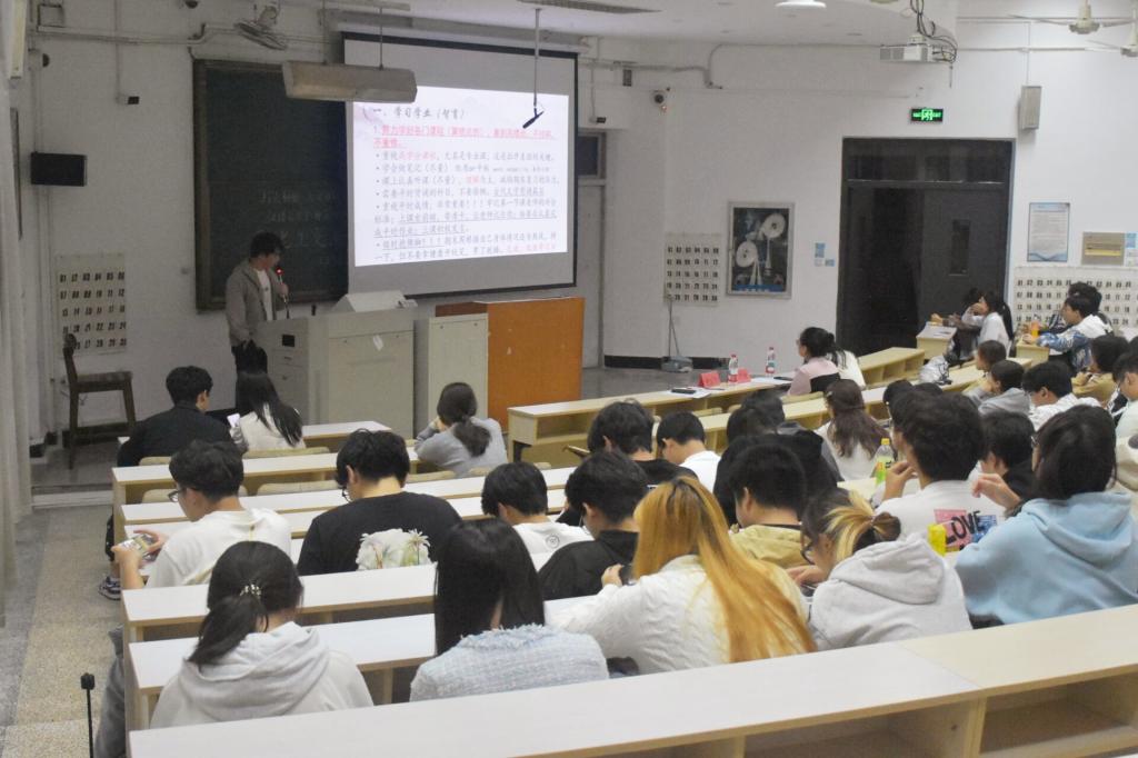 在经验分享环节中,两位学长学姐结合自身学习与实践经历,从多个角度为新生提供了实用建议。金泓民以“从迷茫走向坚定”为题,指出老员工应具备自律与独立的态度,并特别强调了学业的重要性。他就竞赛参与、日常考核与未来就业等方面提出具体建议,鼓励新生尽早规划老员工活,重视英语学习与体能测试,并提醒有意向考编或考研的同学结合个人目标善用网络资源,提前做好信息搜集。陈苏敏则以“探索与起航”到“平衡与深耕”为主线,分享了她通过参赛不断成长的经历。她鼓励新生勇于尝试,避免自我设限,并强调参与竞赛应注重质量而非数量,建议大家在感兴趣且具发展潜力的领域中深入探索。在谈及人际交往时,她指出“向上社交”的本质在于自我提升——只有成为更好的自己,才能吸引优秀的同行者。此外,她也鼓励同学们广泛阅读、多元体验,以此丰富内心世界。