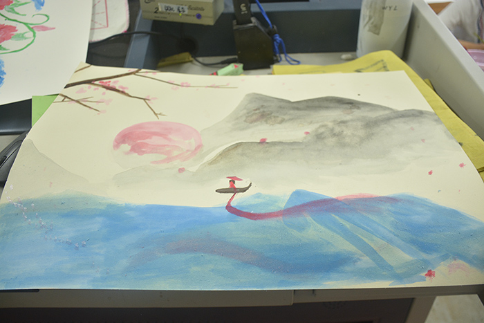 诗情画意,心旷神怡。参赛同学们在窗外淅沥的雨声中享受着诗意般的比赛过程,沉浸在笔的世界中。绘画组题目细腻清婉、意蕴丰富,摘取了诗句“春有百花秋有月,夏有凉风冬有雪”中的“风花雪月”四字为题;毛笔字比赛则以天台万年寺的对联“身比闲云,月影溪光堪证性;心同流水,松声竹色共忘机”为题;时至春光正好、小雨如酥,粉笔字比赛的题目是《滁州西涧》,同学们在书写中感受春潮带雨的别样春景。恰逢“五四”青年节来临之际,钢笔字比赛题目为“五四”主题的现代诗歌,目的是弘扬“五四精神”,将爱国、科学、创新的理念传递给更多的同学。