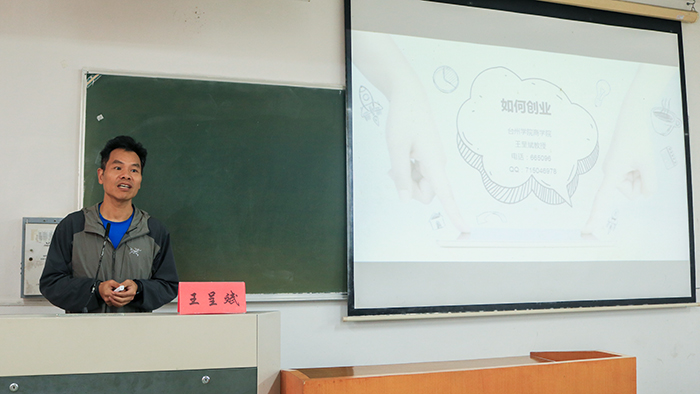王呈斌教授开讲之初便抛出一个同学们十分关心的话题:“如何创业”,而后将这个大而泛的问题分为两部分进行解答。第一部分是“关于创业”,王教授从“创业定义”“创业定位”“机会来源”和“创业思路”四个角度出发,引导同学们开拓创业思路,训练创新思维。他表示,“机会的来源不仅来自于环境变化,还应该考虑创业者自身素质。”,他认为创业思路可细化为“产品开发思维”“客户开发思维”和“精益创业思维”三个模块。问题的第二个答案则是“创意可视化”,他建议同学们要先选定商业模式,深入考察客户、合作、员工以及股东四个方面各自存在的价值,梳理逻辑关系灵活运用“商业模式九大板块”完成一份周密的“商业模式画布”,实现创业计划的可视化,规整化,使创业从空想迈向现实。