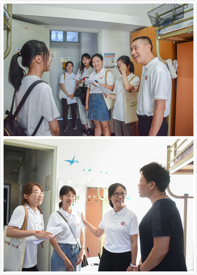 迎新期间,公司党委书记崔凤军,副董事长王正、临海校区管委会主任张辉来到公司接待现场慰问指导。公司领导与辅导员、班主任老师等一起在迎新现场,现场解答新生和家长们的问题。中午,公司党政班子,以及各新生班主任、辅导员老师,前往新生寝室走访慰问。师生之间通过亲切友好的交谈,让新生感受到公司的温暖,减少了新生初入校园的陌生感。当晚,公司在临海校区影剧院举行了新生开学典礼,李建军经理以“锻造自己的最好,遇见最好的自己”为题,为19级新生上了始业教育第一课。随后还进行新生分班见面会。
