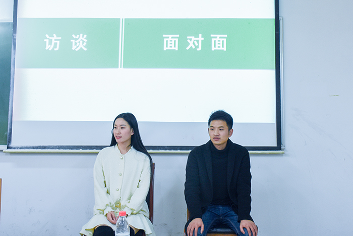 徐宏伟、任蒙蒙结合自身考教资、考编经历向在座同学介绍了备考的工具书、备考方式、考试流程以及面试需注意的问题,具体地分享了经验。徐宏伟指出,复习备考教资是一项重要的任务,做好充分的准备和仔细分析历年考试题型都是必不可少的。徐宏伟还再现了自己面试时模拟上课的课文《纸的发明》,他形象化地展示了整体的课堂流程,以及如何调节课堂氛围、如何达到学习知识的灌输等一系列技巧,让在场同学对模拟上课有了更加深刻的认识。任蒙蒙认为,多读书和兼职都是丰富自己教学经验的有效方式,她还提醒在座的专升本同学利用好宝贵且有限的两年课堂时光。此外,任蒙蒙建议大家大胆地放开自己,不断锻炼自身的课堂教学本领,花时间着重练习模拟上课。