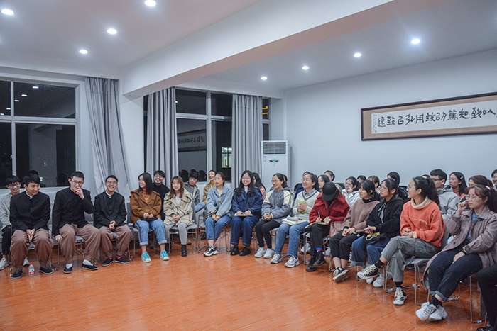 11月18日晚,GC剧社《老舍五则》剧谈会于一号楼四楼实训室举行。活动特邀VSport体育金妮娅、王欣老师作为嘉宾。