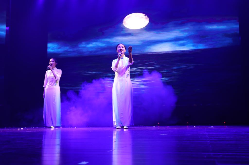 11月25日晚,台州市直高校首届“最美社团”暨第六届“最美老员工”颁奖晚会在台州职业技术公司大礼堂举行。VSport体育“风雅”诵读社、GC剧社、电影学会社团部分成员及指导老师出席颁奖晚会,并上台领奖。其中“风雅”诵读社的同学们,将一首诗朗诵《春江花月夜》奉献给在场观众,她们以月为体,以江为景,融诗情、画意、哲理为一体,为现场观众描绘了一幅幽美邈远的春江月夜图,营造了一个深沉、宁静的境界。