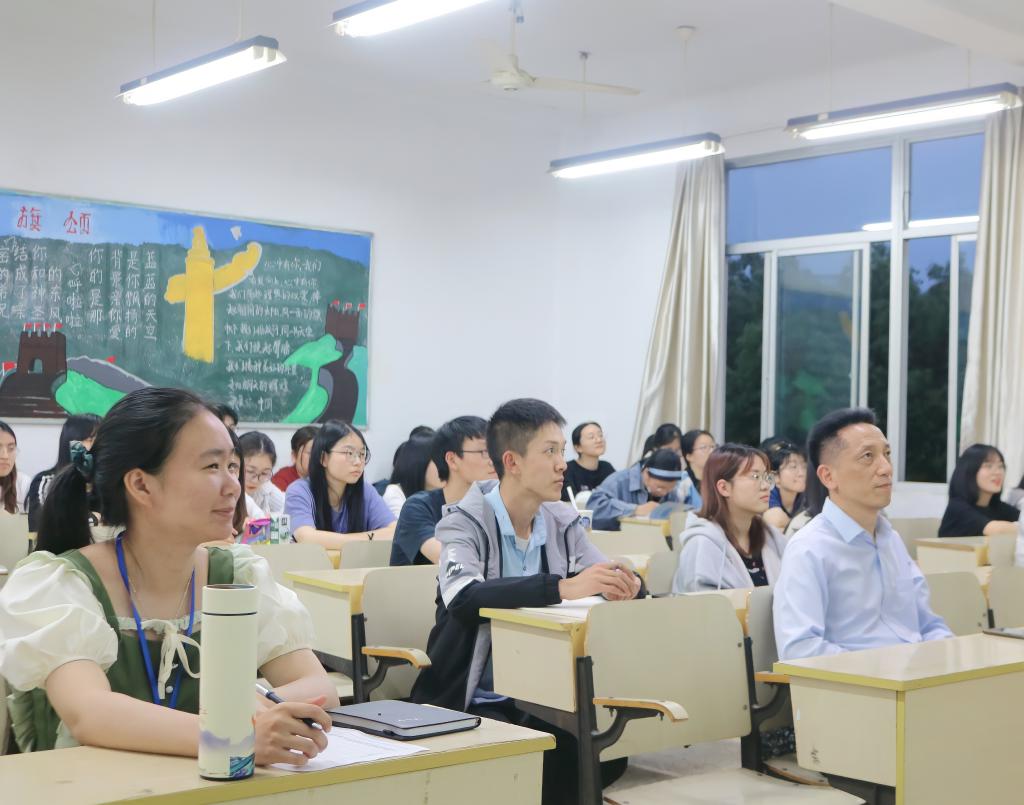 活动伊始,李金荣老师便强调作为中文系的同学,尤其是对于以后要从事语文教学的同学来说,对一篇文章的解读一定要有深入的了解和独到的见解。同学们从进入中文系开始便应培养用不同的视觉去阅读一篇文章的习惯,把握和运用好语言的架构。紧接着,李老师结合语文课本中的经典案例分别从“所有的艺术作品都是一定哲学思考下的美学架构”“文学作品的架构元素:言语”“言语架构产生的艺术效果”三个方面对写作意图支配下的言语结构做了深入解读。在李老师看来,作者的写作意图和情绪都融合在文章的具体段落中,文字的排列及语段的组合都是作者进行深思熟虑的结果,对中文系员工而言,要对语言的基本结构反复推敲,不断思考语言的组合架构,这样才能领略文学之美。在互动交流环节,李老师建议同学们要广泛阅读世界经典名著,赏析文章中的言语架构,在品味语言的过程中体悟作者的思想情感。