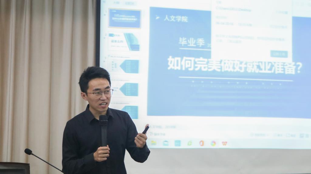 6月7日晚,“人文类专业就业路径选择与准备技巧” 讲座在图书馆六楼报告厅举行,特邀砺行公考申论、常识、面试金牌讲师,面试培训院经理祝文峰主讲,公司党总支副书记林仙、分团委书记夏文杰、辅导员赵远哲应邀参加,18级部分同学到场聆听。