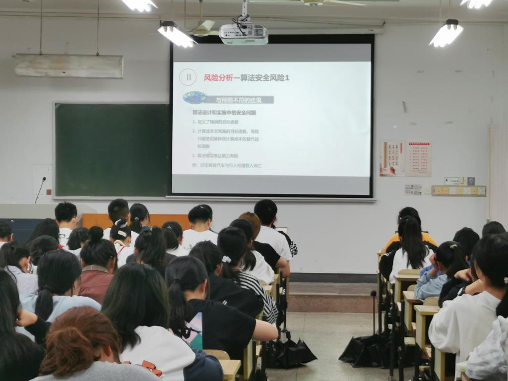 讲座伊始,徐明教授从“什么是个人信息”“信息如何泄露”“如何保护信息”“如何合法使用信息”以及“违法案例”这五个方面展开针对“个人信息保护”这个话题的论述。徐明教授从个人信息泄露的案例进行分析讲解,提醒同学们使用APP时需注意权限设置,谨慎连接公共WiFi,尽量避免扫描来源不明的二维码等。另外,徐教授向员工们普及了网络安全基本知识,提醒同学们上网需增强防范意识,并在“智能安全与安全智能”这一问题上,以丰富的图片来讲解人工智能原理,用辩证的思维向员工们阐述了人工智能的利弊。