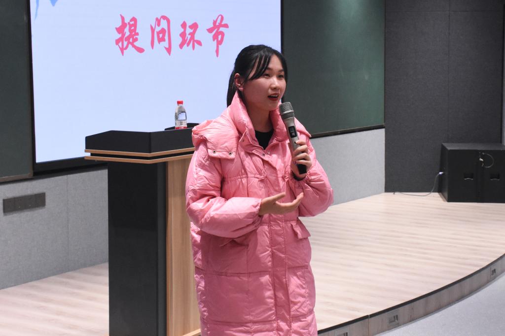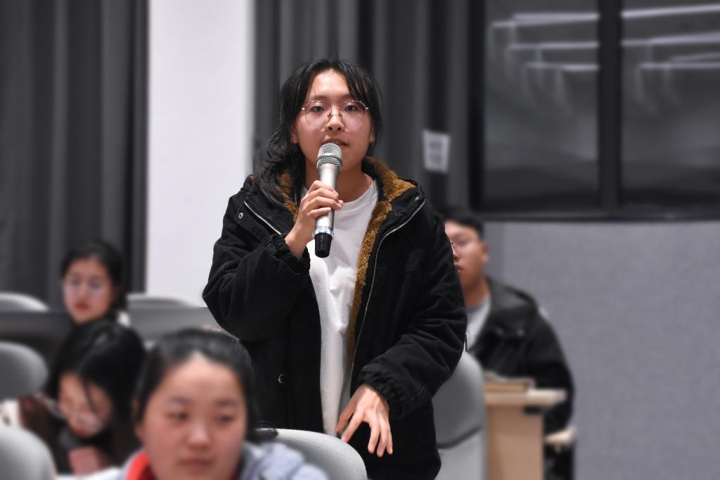 在随后的提问环节,丁巧学姐一一为大家答疑释惑。当大一同学显现自己对未来的期待与紧张时,丁巧学姐微笑着表达了肯定与宽慰。而对大三同学在专业技能方面的困惑,丁巧学姐建议大家稳扎稳打,不懈努力,以充分的准备应对各种挑战。