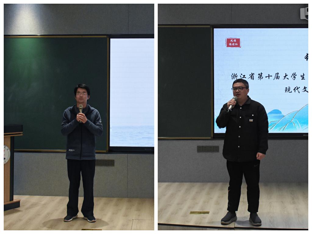 活动伊始,金妮娅老师展示了从省第三届到第九届参赛选手的风采以及取得的成绩,介绍了从院—校—省竞赛流程,勉励同学们重视备赛过程,在备赛过程中不断学习、成长与蜕变。她还就朗诵作品的选择、普通话音准、文本解读等方面的备赛注意事项作了强调。金妮娅老师针对演讲环节开展了专门的培训,她从讲稿话题的选择、材料的搜集、题目的撰写入手,鼓励大家写出“有感情、有内容、有结构”的演讲稿。程向荣老师从古诗文作品的选择、文体风格、作品意涵、文章结构、语言节奏等方面指出备赛的方向。王欣老师表示备赛是一个由简入繁的过程,除了找到原文以外,还要挖掘整篇作品背后的故事和其中蕴含的作者的思想感情。林健峰等7位往届参赛选手分享了朗诵演讲的技巧、叙事性演讲稿的撰写,放平心态,停止对比,相信自己,以良好的心态迎接竞赛。