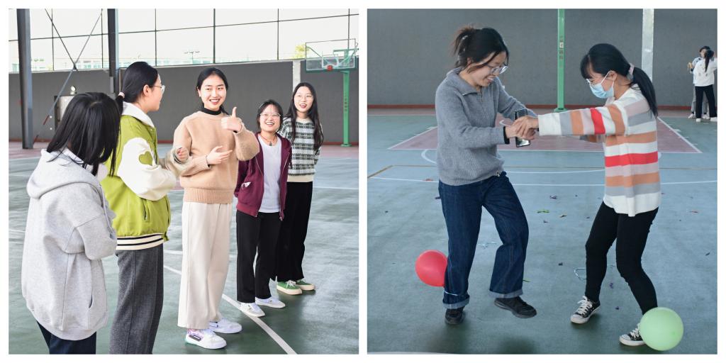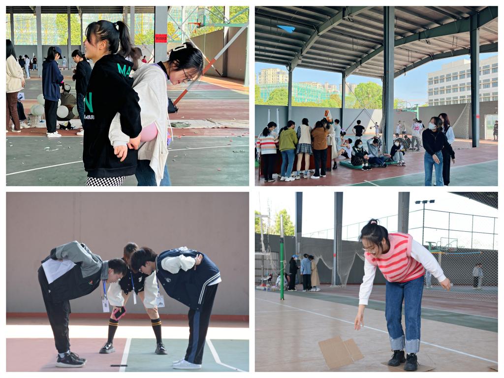 本次趣味游园活动有“过河拆桥”“快乐抱抱爆”“传递版你画我猜”“大富翁”“气球保卫战”“闹钟炸弹”“抢手机”“水果连连看”“自由飞翔”“趣味动作接龙”等10项游戏活动。游戏过程中,每个项目看似简单,却考验着合作者之间的配合度。搭档们或默契十足,或笑料百出,吸引着现场同学驻足观看,齐声呐喊。同学们在“自由飞翔”游戏中,制作、放飞纸飞机,想起童年无忧无虑的时光。游园活动还设有惊喜的抽奖环节,奖品丰富又实用。同学们乘兴而来,兴尽而归,在春意盎然的校园里感受着游戏的快乐。