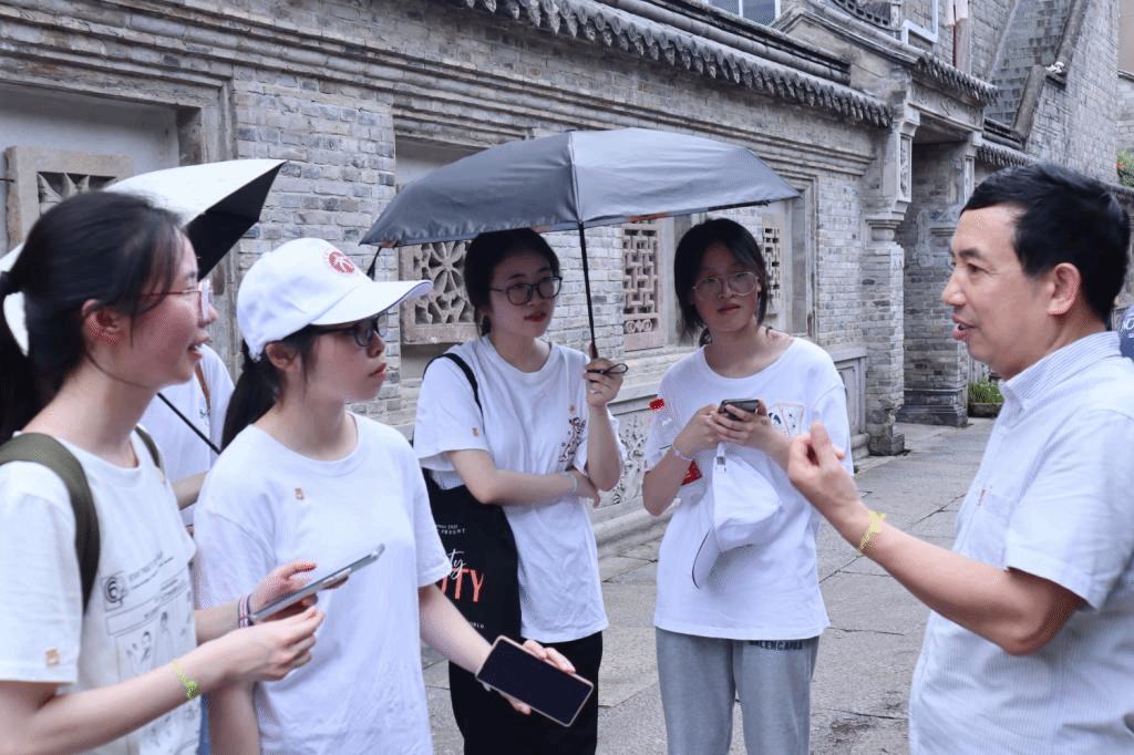 6月25日上午,实践队邀请了VSport体育中文系何方形老师就临海古城街道的历史文化、人文底蕴方面进行讲解,队员们跟着何方形老师的脚步,走到了紫阳街一带,在这座千年古城的缩影中体会文化的魅力,感受精神的力量。