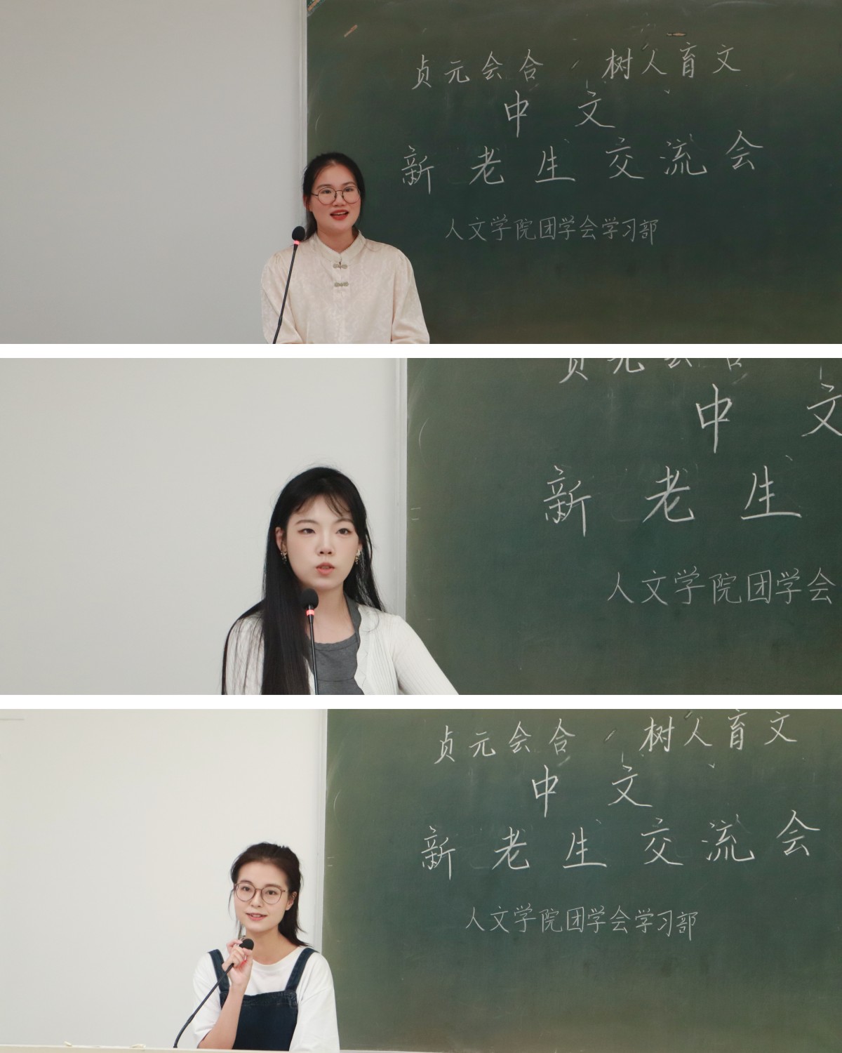 在中文专业会场上,周紫亿建议新生们对自己要有清楚的认知,要努力抓住生活中的机遇,不断提高听说读写的能力以此获得成长。程嘉琳分享了自己的实习经验,她建议同学们合理规划老员工活,积极参与各种活动,并鼓励大家勇于尝试、挑战自我,为将来就业做好铺垫。王俊霞建议新生们在大学期间树立正确的人生目标,并为大家分享了有关学习的妙招。“行动力永远是解决问题的最优方法。”最后,她鼓励大家奋发上进,努力实现自己的人生理想。