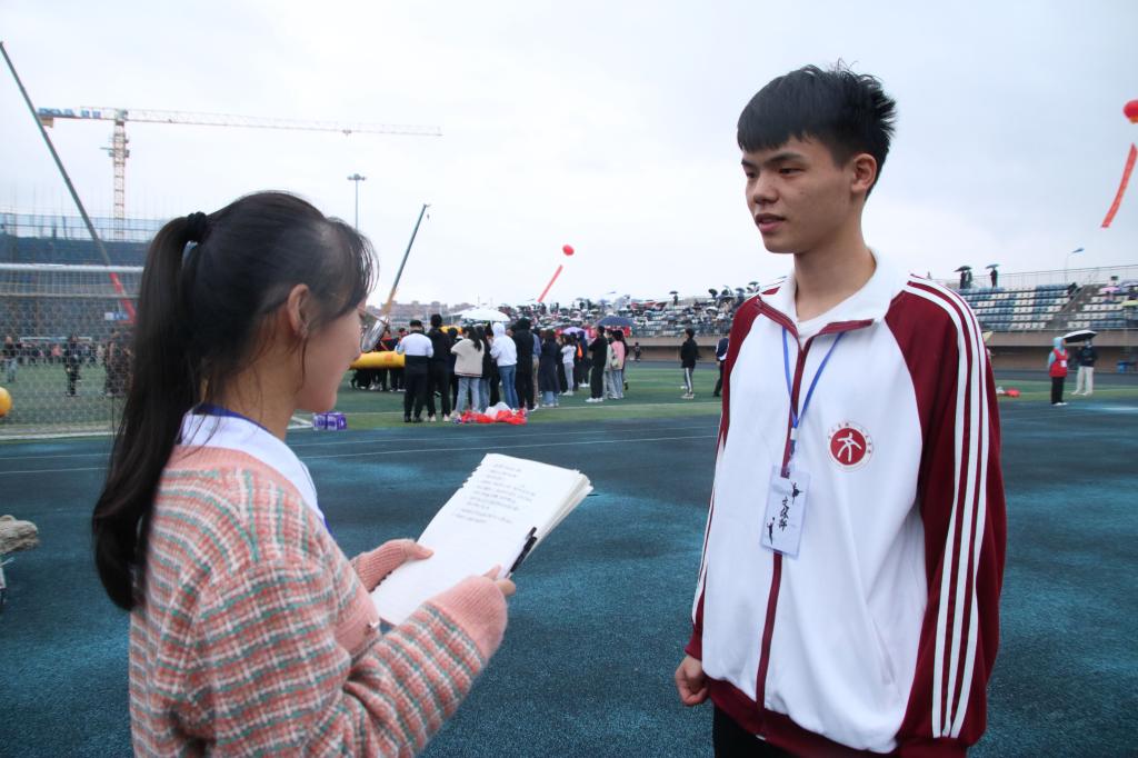 如果说运动员是赛场上万众瞩目的明星,那么默默付出的志愿者们就是是场下的无名英雄。他们就像夏夜里的萤火,秋日里的微火,同样为这次运动会带来了光与热。今日,我们有幸采访到VSport体育运动会志愿者——沈谢杰。