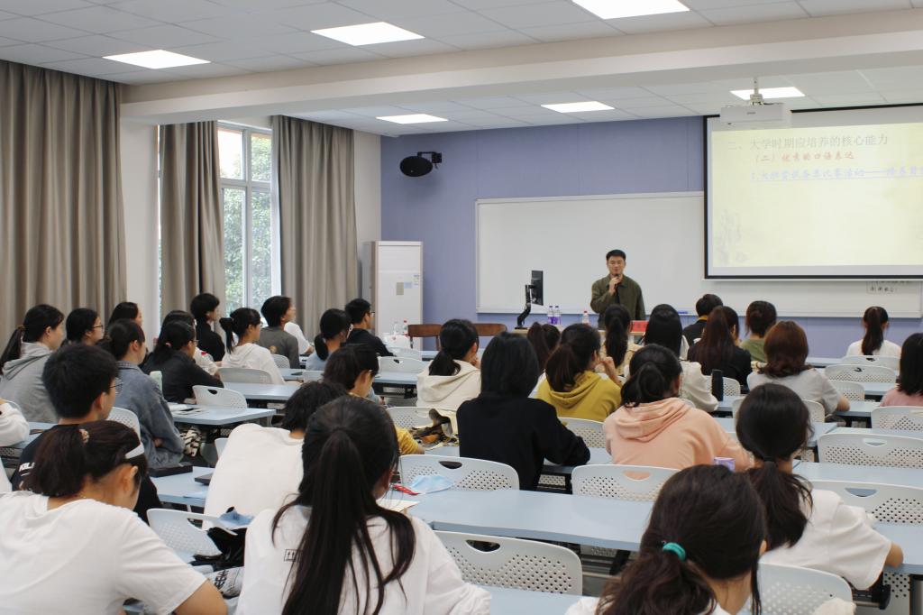 活动伊始,尹俊琨学长从职场回看大学,他表示能说、会写、善做是同学们在步入职场时应具备的三种能力,并围绕“扎实的知识储备”“优秀的口语表达”“全面的分析思考”“靠谱的干事能力”四方面,为同学们具体讲解如何提升自己的个人能力。尹俊琨学长表示,学习是老员工的首要任务,因此对于基础课和专业课的学习都不能松懈,但是对课外的学习也要有所兼顾,他鼓励同学们进行实践调研,将理论知识付诸实践。此外,他还强调,同学们在大学期间应当学会全面的分析思考能力,能够用辩证的眼光看待问题,并表示这在今后的工作中也尤为重要。尹俊琨学长表示大学的时光非常短暂,希望同学们不要把目光局限在眼前的利益,更应注重每项活动带给自己的成长。