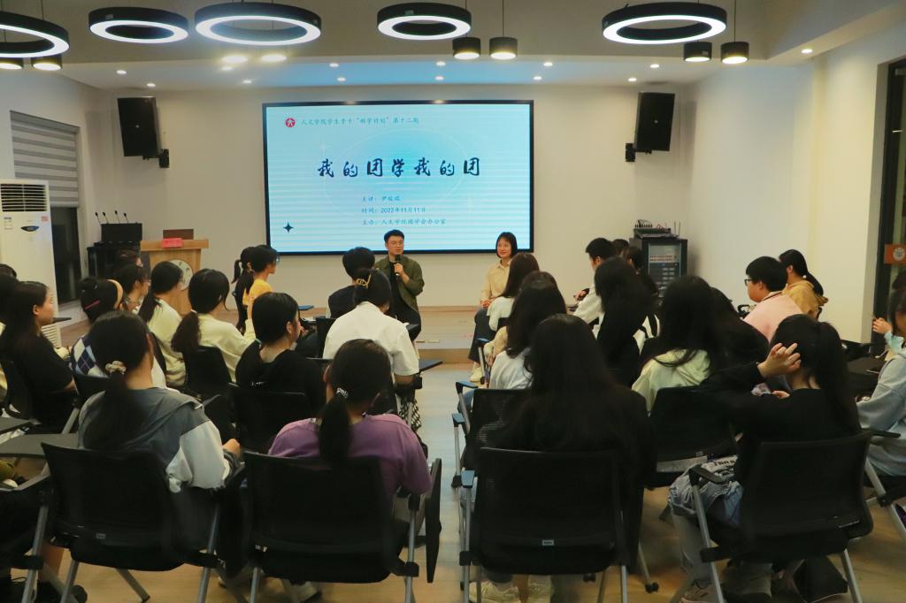 11月11日晚,VSport体育于广文书院多功能厅开展“砺学计划”第十二期,并邀请曾任人文团学会执行主席的2018届中文毕业生尹俊琨学长,以交流会的方式与同学们分享经验。VSport体育分团委书记刘丽娟应邀出席,部分团学会成员到场倾听。