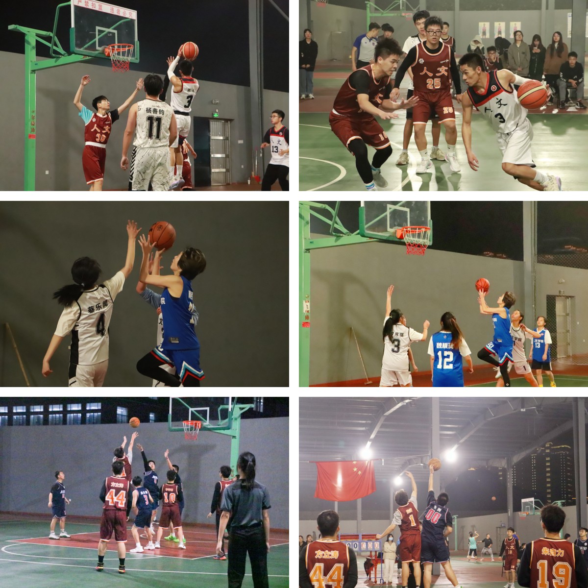 场上呼声激烈,掌声雷动。首先进行的是男篮大一大三联队与大二大四联队的交锋,每位球员都以最饱满的激情迅速投入比赛。起跳、传球、投篮,默契的眼神在空中交汇,精彩的比赛引起呼声阵阵。双方球员你争我夺,你攻我守,赛况激烈。最终大二大四联队赢得第一场比赛。接下来几天的赛况亦是如此。女将们在比赛中也展现了不俗的球技,默契传球,投篮上分,一连串动作干净利索,令人拍手叫绝。冬日的风破不开场上的青春热血,每位球员拿出百分百的专注对待比赛,在篮球场上与球奔跑,展现万丈蓬勃朝气。