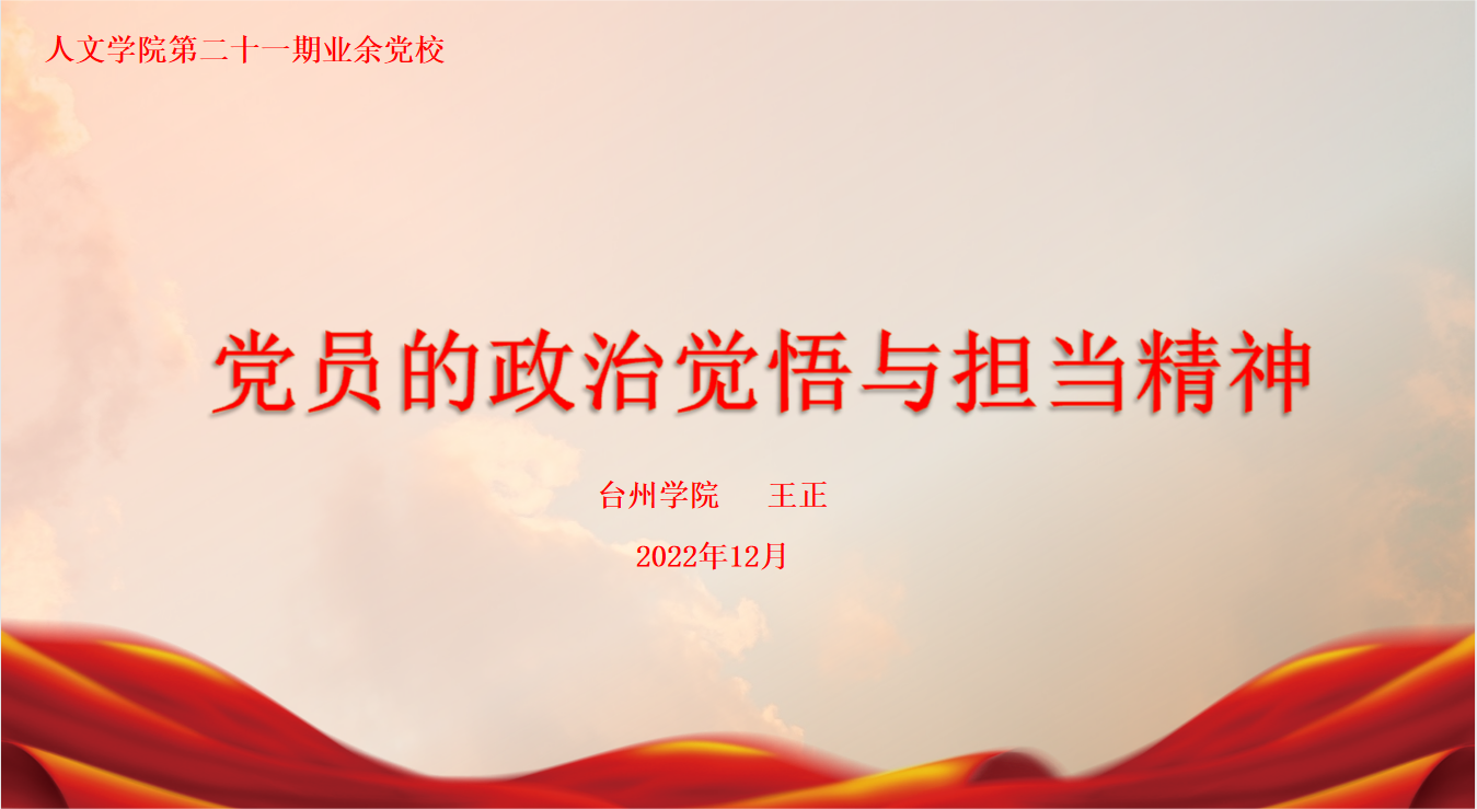 12月9日下午,公司党委委员、副董事长王正围绕“党员的政治觉悟和担当精神” 为人文学子上党课。党课由公司党委副书记林仙主持。