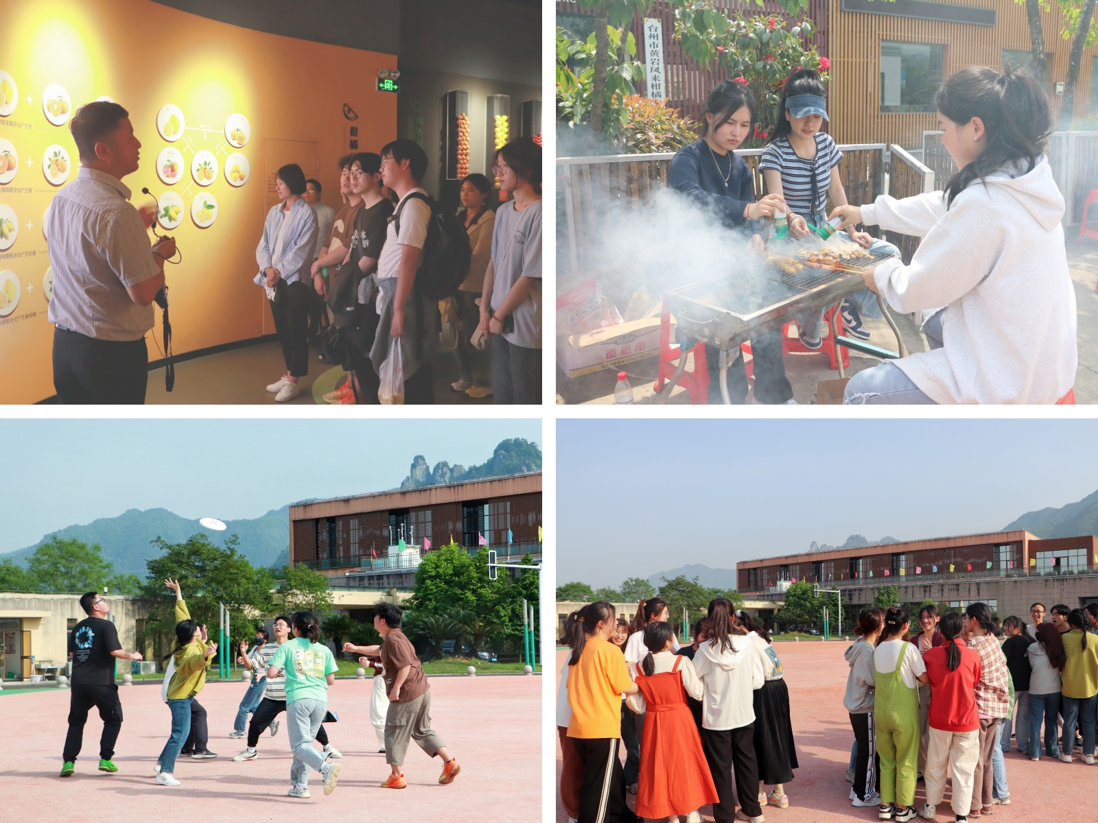 首先,同学们来到橘园欣赏自然风景,并在导游的介绍下对当地橘子的品种以及相关情况有了初步认识。大饱眼福过后,一行人前往农家乐享用午餐。大家架起烧烤支架,在通力协作、共享美食的过程中增进了彼此间的友谊。午餐结束后,同学们来到中国柑橘博物馆,并跟随讲解员共同学习了黄岩柑橘发展简史以及各种柑橘文化。在古色古香的展馆内,同学们用心感受这里的历史底蕴,收获颇丰。接着,大家来到室外进行素拓。扔飞盘、“爱的抱抱”……同学们欢快的气氛同春日般和煦。最后,大家一起合影留念,为本次活动画上一个圆满的句号。