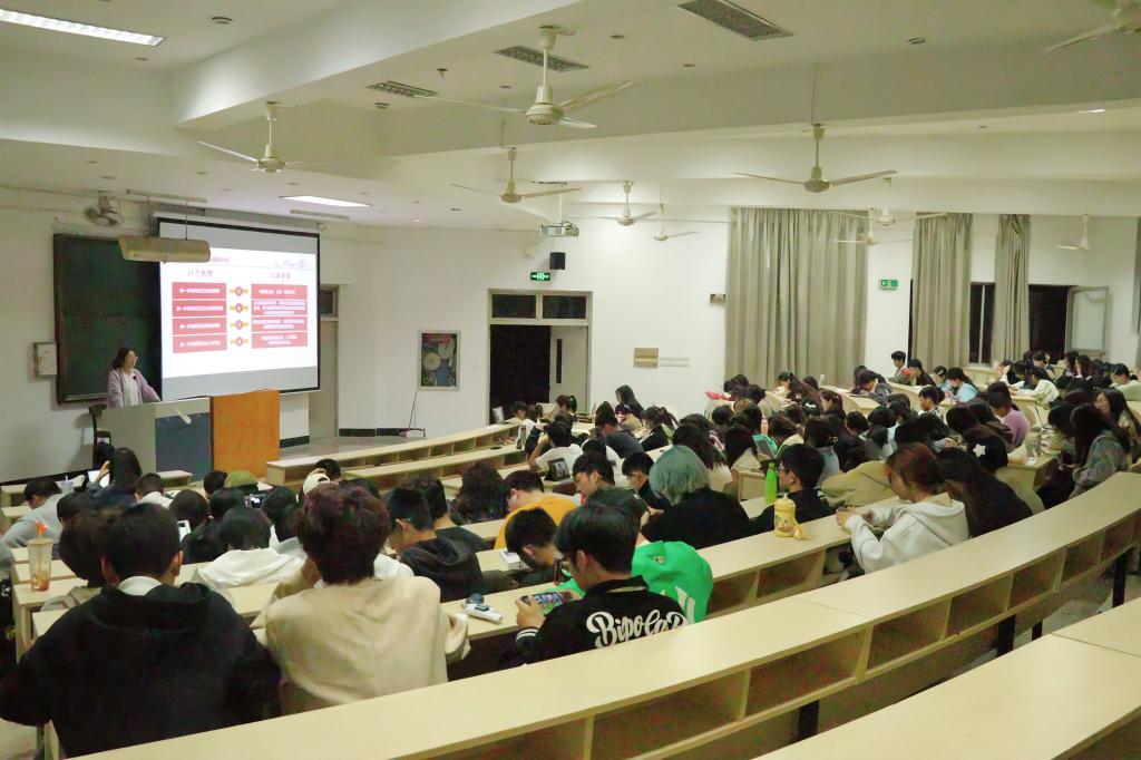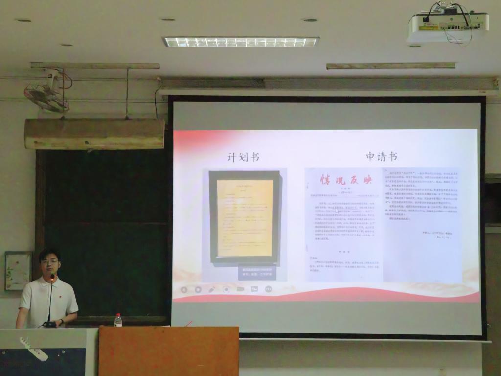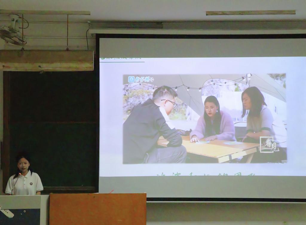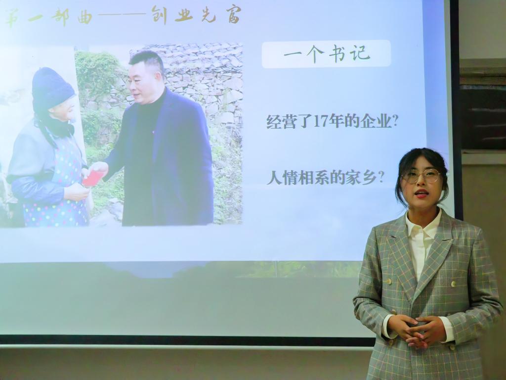 “新声”宣讲团成员樊柯驿以“一份计划书和一份申请书”为切入点,为同学们宣讲“八八战略”与革命精神、垦荒精神。同学们通过宣传片了解了革命先烈郭凤韶的革命故事,感受到了英勇就义、志存芳华的革命精神;通过项香女老师的垦荒支教经历,学习到了无私奉献、开拓创新的垦荒精神。