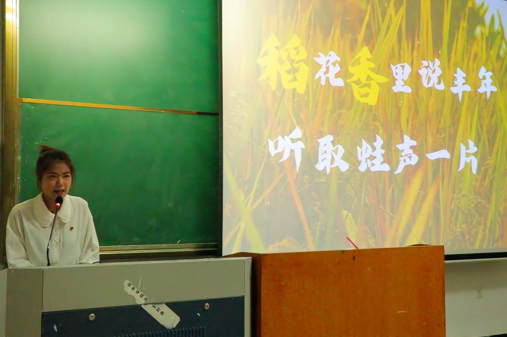 “新声”宣讲团成员金子琰介绍了“温州粮仓”——平阳县极响应“八八战略”的号召,以耕地“非粮化”整治为抓手,不断夯实粮食安全根基,让“良田”回归“粮田”属性,全力守好“米袋子”,让一颗颗稻种变为了一颗颗致富的“金种子”。