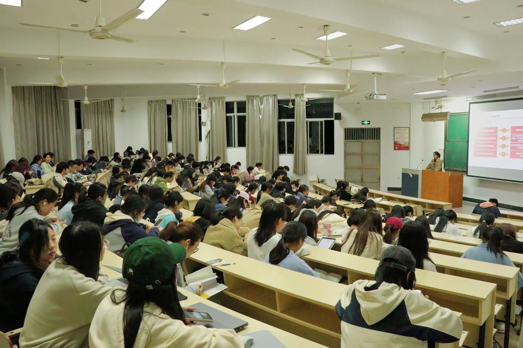“新声”宣讲团成员何燕向同学们介绍了安吉余村的绿色发展之路,并从余村三抹绿色出发,介绍余村青年在改造余村起到的重要作用。在何燕同学的宣讲中,同学们深刻体会到了忠实践行“八八战略”、奋力推进“两个先行”的精神力量,以及青年人在新时代应肩负的使命和巨大的创造力量。