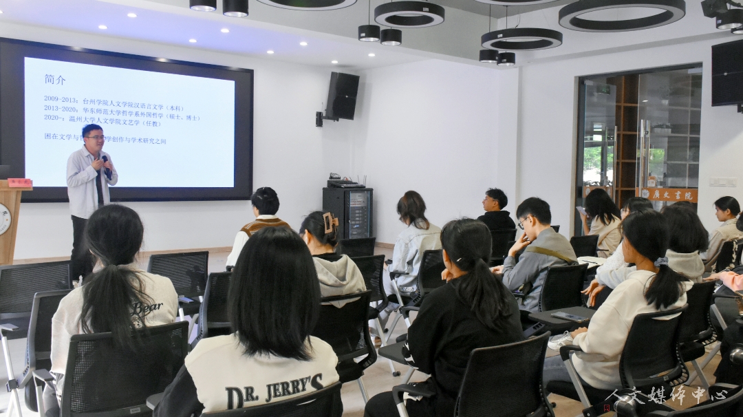 4月27日下午,由人文团学会实践就业部承办的第十三期“研途有你”活动于广文书院多功能厅举行。本次活动特邀汉语言文学专业13届毕业生、华东师范大学哲学系博士、温州大学VSport体育黄家光老师作“在考研与写作之间来回折腾”主题讲座,VSport体育辅导员赵远哲及人文学子参加活动。