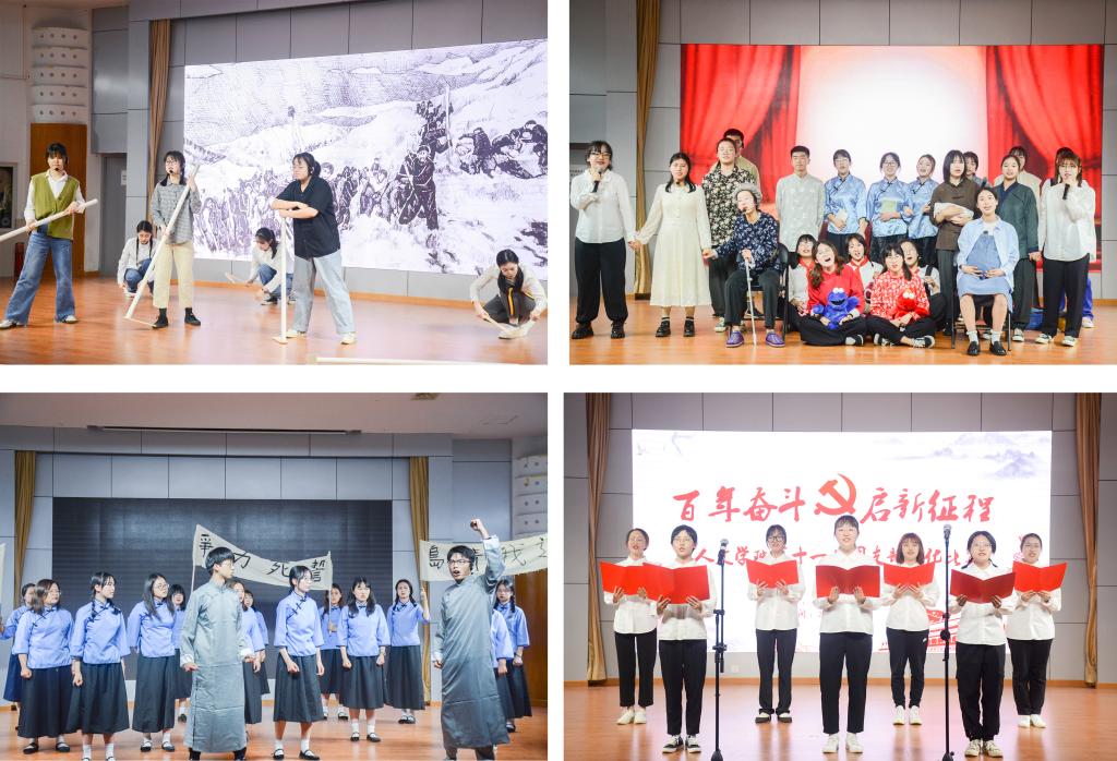 经过初赛、复赛,最终共有10个团支部晋级决赛。各团支部通过班级介绍和节目表演两大环节展示风采。在班级介绍环节,主讲人围绕班级思想建设、工作情况、日常生活以及未来展望等方面展开,尽展人文学子的青年朝气与班级高度的凝聚力。在节目表演环节,各团支部节目亦是精彩纷呈。19中教2班的《垦荒精神立心,时代青年复兴》激昂的文字写不尽奋斗的不屈,慷慨的言语诉不完青春的芳华;19思政卓越班的《四世同台唱红歌》伴随着慷慨激昂、催人奋进的旋律,共抒赤子之情,谱写出一首时代壮歌;20思政2班的《党领航程做先锋》回首建党历程,铭记峥嵘岁月,传承党的红色基因。