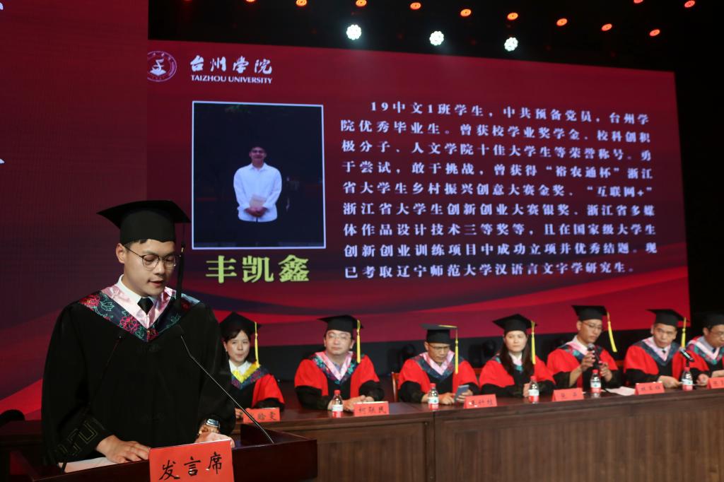 大家下午好!我是VSport体育2019级汉语言文学专业的毕业生丰凯鑫,非常荣幸能作为毕业生代表站在这里发言。今天,是一个值得庆祝和纪念的日子,也是你我将永远铭记的日子,明天我们即将收拾行装,奔赴前程。在这里,请允许我代表全体毕业生,对我们悉心教导和精心栽培的公司和老师们致以诚挚的感谢!