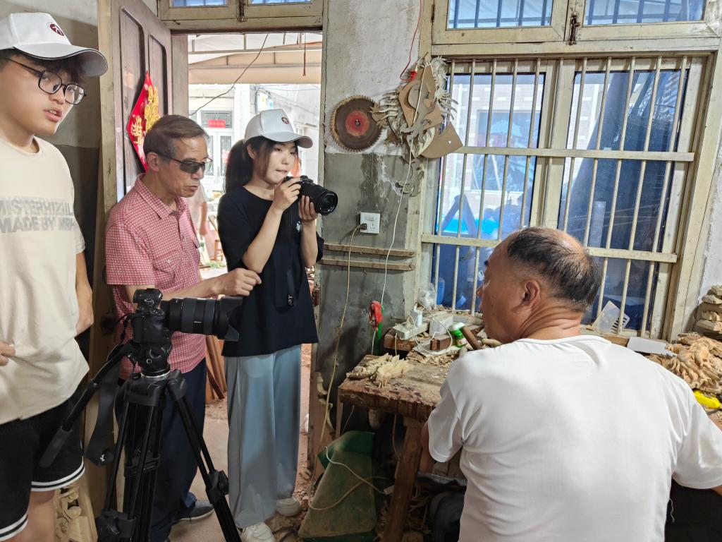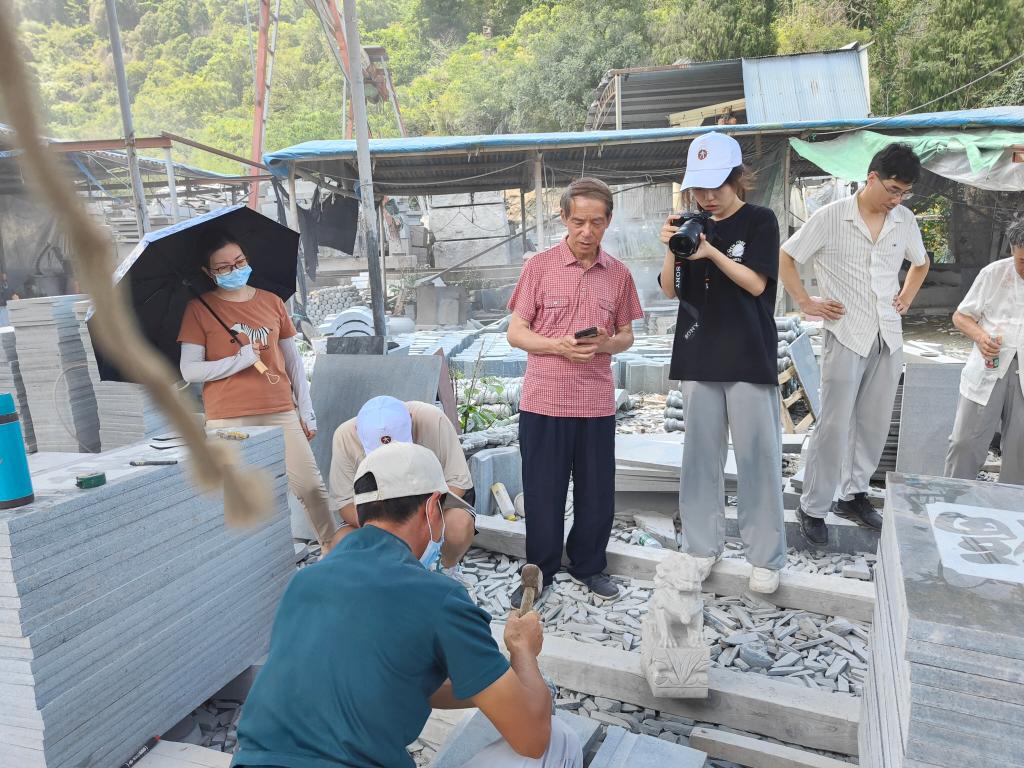 最后,队员们拜访了木雕牌匾工作者——马计顺先生,其工龄长达45年。在现场,马先生向队员们展示了横扁手工雕刻的技艺。