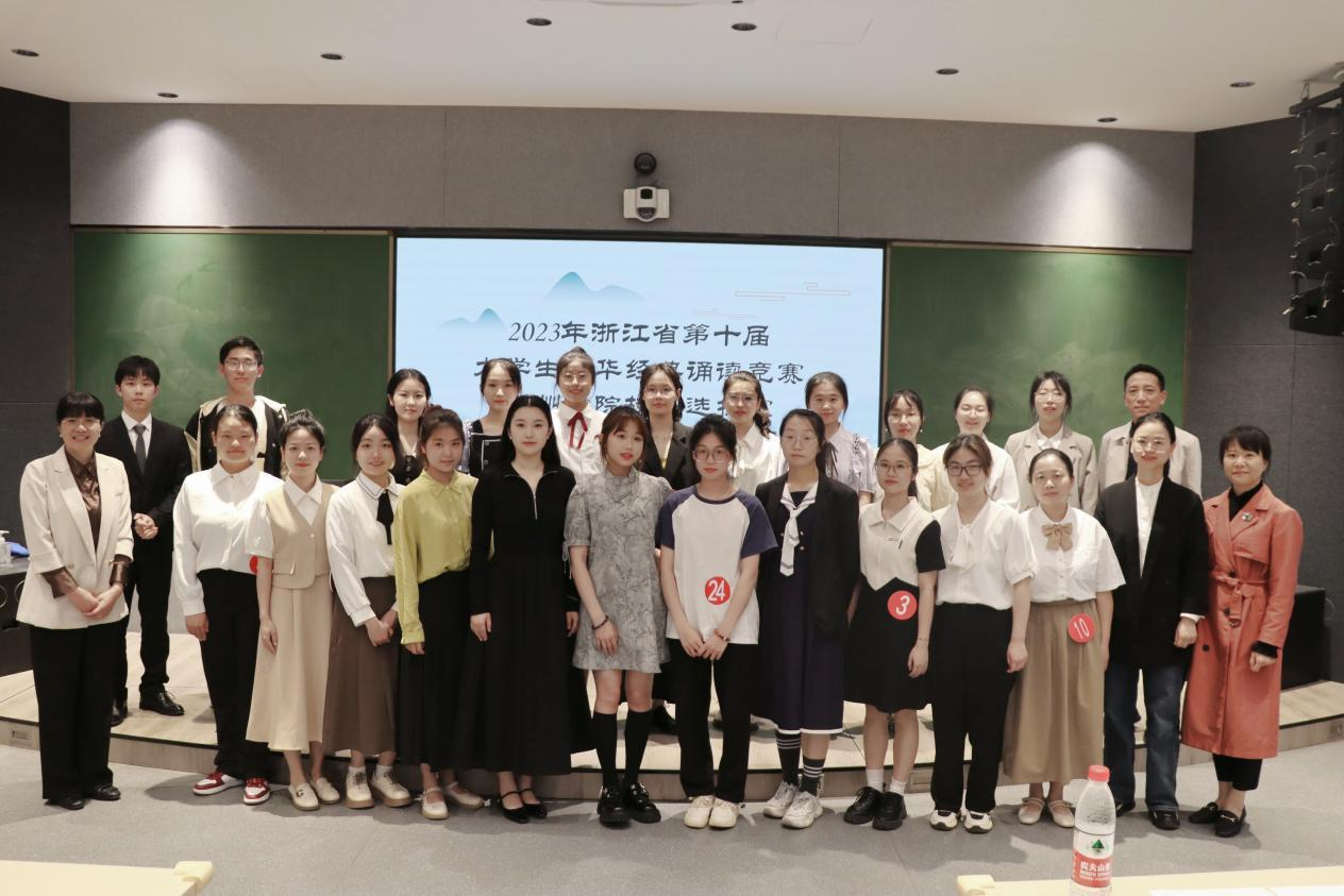 浙江省第十一届老员工中华经典诵写讲大赛“典润之江”经典诵读竞赛由浙江省语言文字工作委员会、浙江省老员工科技竞赛委员会主办,分为个人组、综合组、职工组三个组别。本科院校中,个人组有56所高校403位选手参赛,经专家评委的审定,119位选手进入决赛。综合组全省共有44所高校提交了147个作品视频,职工组有22所高校提交了49个作品视频。