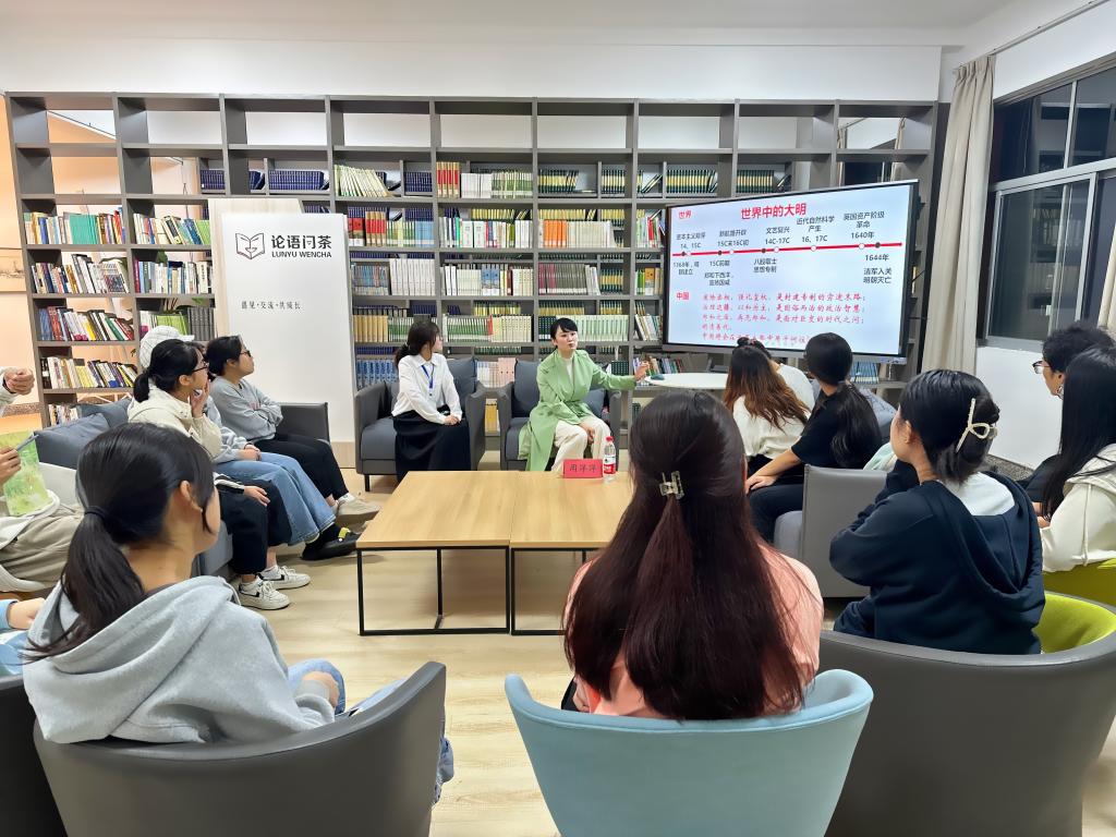 活动伊始,周老师以“现阶段大家对于未来从事教师职业规划有哪些困惑”为引,激发同学们对未来职业规划的思考,并针对如何获得教学设计灵感,提出以研做中考卷,高考卷来收获教学设计灵感的建议。随后,在了解同学们目前课程内容与师范生技能锻炼情况后,针对现阶段同学们在师范技能上的困惑之处,周洋洋推荐《我的教学智慧》《教学的艺术》等书籍,鼓励同学们从阅读中汲取教学知识。为了分享更为直观生动的教学经验,周洋洋以“创意·开发·雕琢”为关键,在“初高中历史教学中的史料实证与历史叙事的有机结合”主题之上,结合高中课程内容“从明朝建立到清朝入关”的教学设计案例,为同学们作了详细而生动的课堂示范与设计意图,注重问题链的设计,逻辑结构的建立,教材文本的解读。