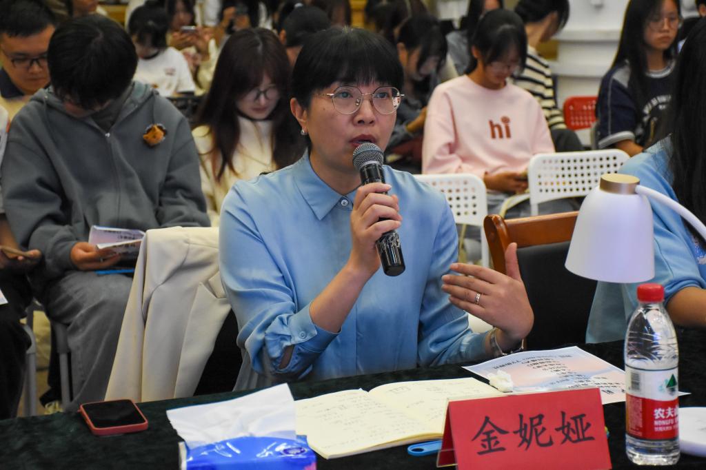 在评委点评环节中,金妮娅老师肯定了同学们的精彩表演,她表示,各剧组的表演展现了同学们丰富的内心世界,架起了老师与同学间沟通了解的桥梁。在给予肯定的同时,她在情节设置、情绪体验、台词表达、舞美道具等方面提出了建议,希望同学们在剧本创作上能明确表达诉求,让观众更好地感知情绪,并鼓励创演同学们在原有基础上取得更大的进步。