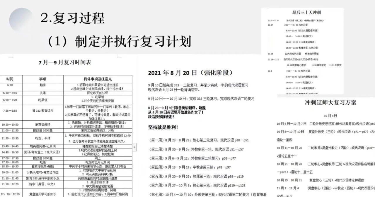 喻佳龙以自己在学科语文专业考研的经历为基础,从复试准备、调剂准备、初始备考经验分享三个方面给出了相关建议。在复试准备中,他建议同学们多准备复试材料,并提前进行心理调适,保持稳定的心态面对考试;在调剂准备方面,他提醒同学们要真实面对自己的成绩,合理地选择目标院校;在备考分享中,他表示要在坚定考研目标的基础上,广泛利用网络考研资源,了解考研政策,保持激情,专注备考。