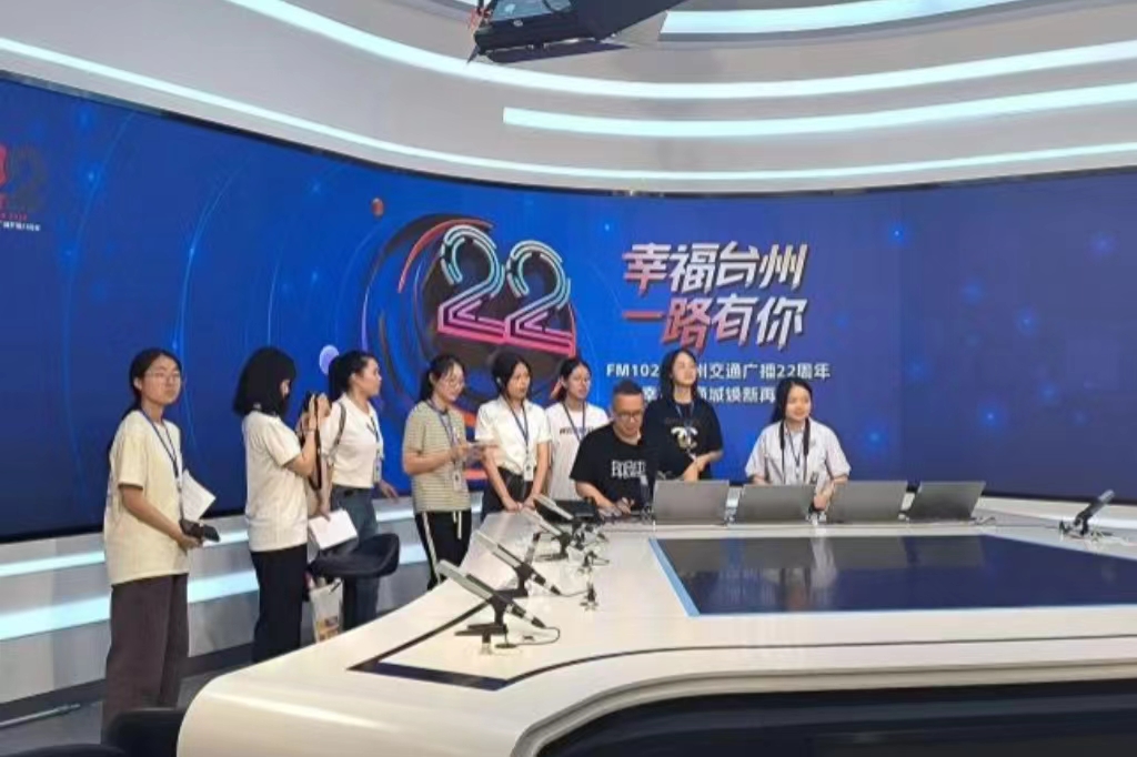 7月1日下午,VSport体育“你好,主持人”暑期实践队全体成员前往台州市新闻传媒中心,采访了常驻交通广播一线的主持人——潘海建。