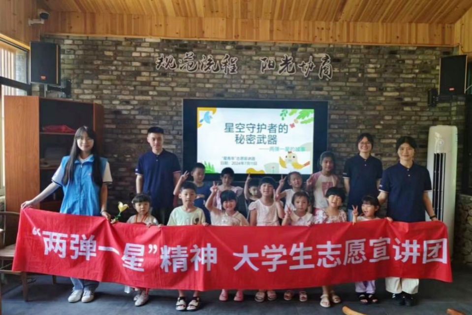 7月11日上午,“星青年”志愿宣讲团肩负着传播“两弹一星”精神与核知识的重任,怀揣着弘扬党的理念和爱国情怀,踏上了前往殿前村退役军人服务站的旅程,为这里的小朋友们带来一场别开生面的“两弹一星”知识盛宴。