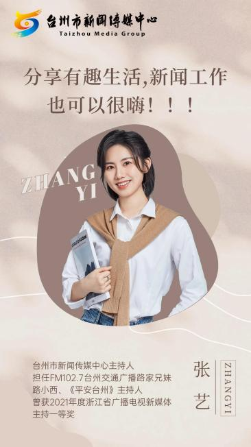 张艺,台州市新闻传媒中心主持人,既是FM102.7台州交通广播路家兄妹成员路小西、也是《平安台州》栏目主持人,曾获2021年度浙江省广播电视新媒体主持一等奖。其作品创新能力较强,融合技术手段,多采取短视频、移动直播的形式,风格活泼有趣。