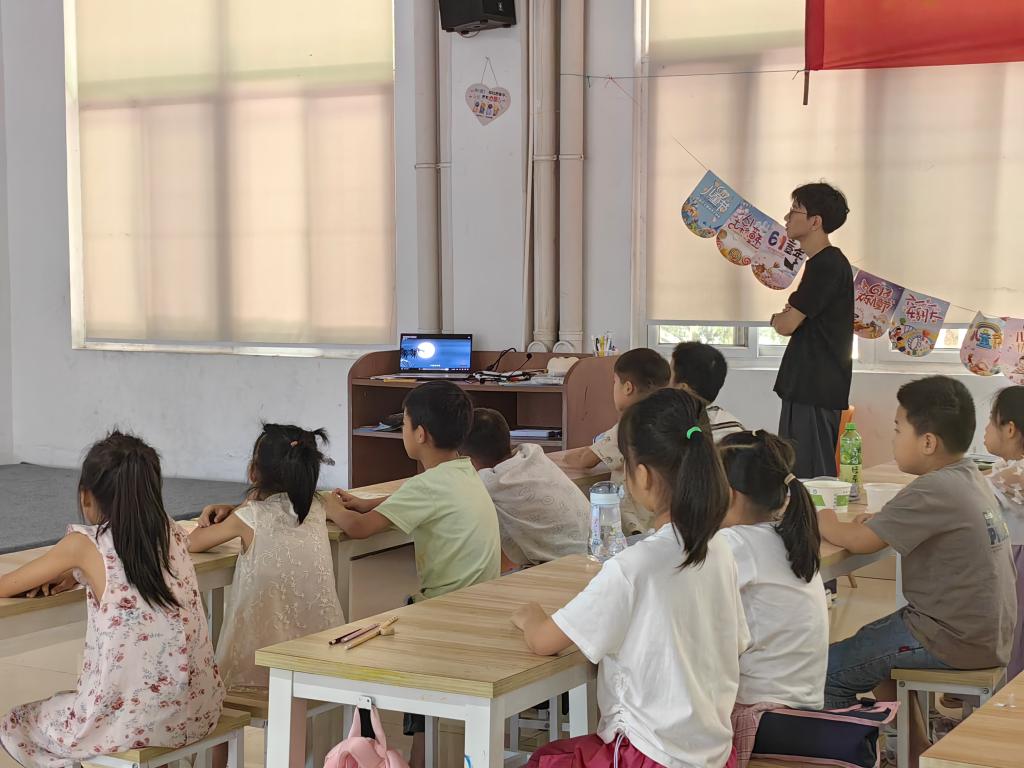 下午,实践队员们带领小朋友们上了一节较为轻松愉快的电影鉴赏课。在观看《疯狂动物城》的片段后,老师和小朋友们共同探讨了关于理想的问题。在老师引导下,小朋友们积极说出自己的理想。张嘉骏小朋友说:“我的梦想是当一名军人,保卫祖国!”,张佳语小朋友说:“我想当一名警察,打败坏人!”。通过这堂课,小朋友们更加坚定了自己的理想,明白了无论前途多么困难,都要勇往直前,为实现自己的理想努力奋斗。