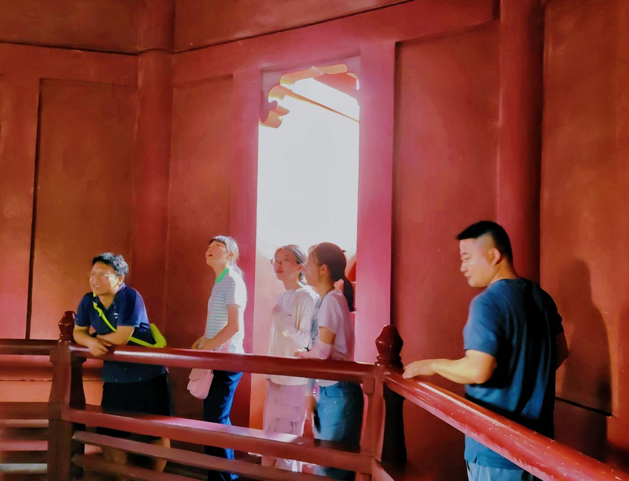 “忽登最高塔,眼界穷大千”,队员们踩着狭窄的塔道登上塔顶,俯瞰整个湖州城吴兴区,感受着古运河的悠悠历史与现代城市的勃勃生机。在塔下是飞英公园,设有西亭、墨妙亭、韵海楼、舍利牌坊等,荷花池中不时荡起涟漪。诗意千年,水何澹澹,飞英塔于大运河之际遗存,与历史长流相映生辉。