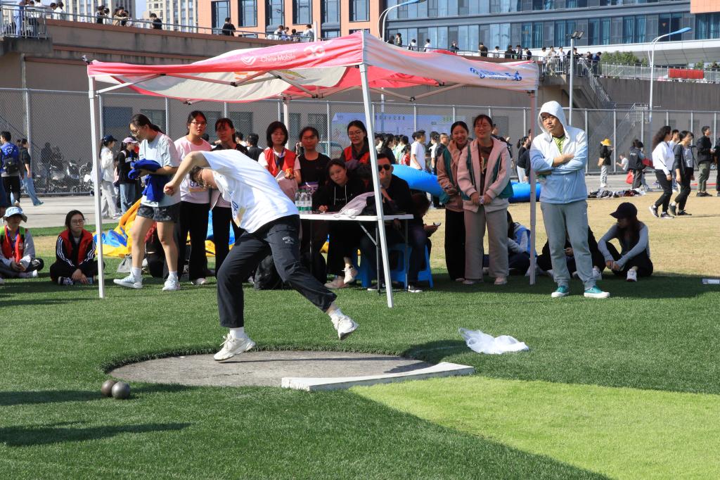 吴江楠准备铅球比赛中