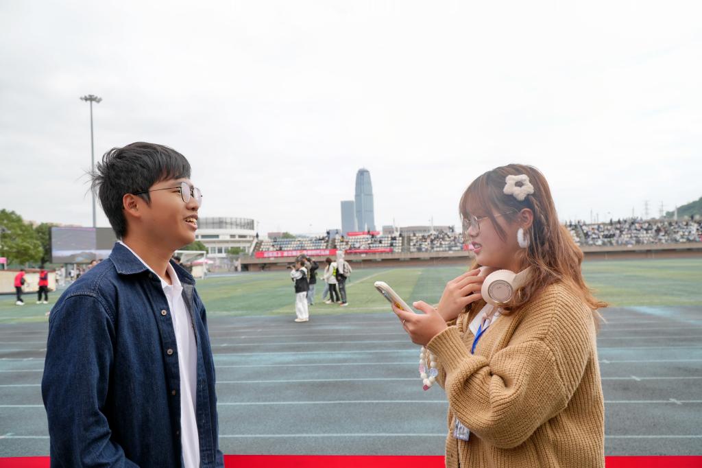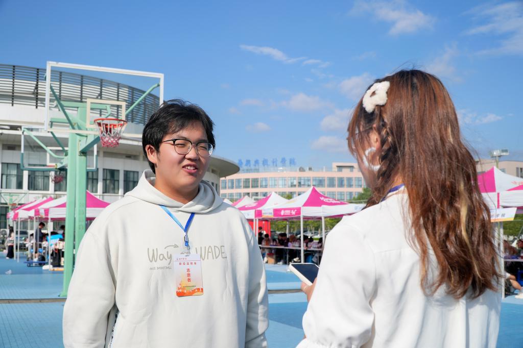 在被询问今天的工作内容时,尤奕能用寥寥几字概括了一天的奔波:对接运动员,全程陪同并提供必要的物资支持。大家都起得很早,而他脸上却看不到经历一上午劳碌后的疲惫,眼眸中的光反而格外闪亮。问及他坚持做志愿者工作的原因时,他如是说:“作为志愿者,最有意义的地方在于能够为社会贡献自己的一份力量,无论大小。通过帮助他人,自己也收获了成长、快乐和满足感。这种正能量的循环,让我觉得生活更加充实和有意义。”